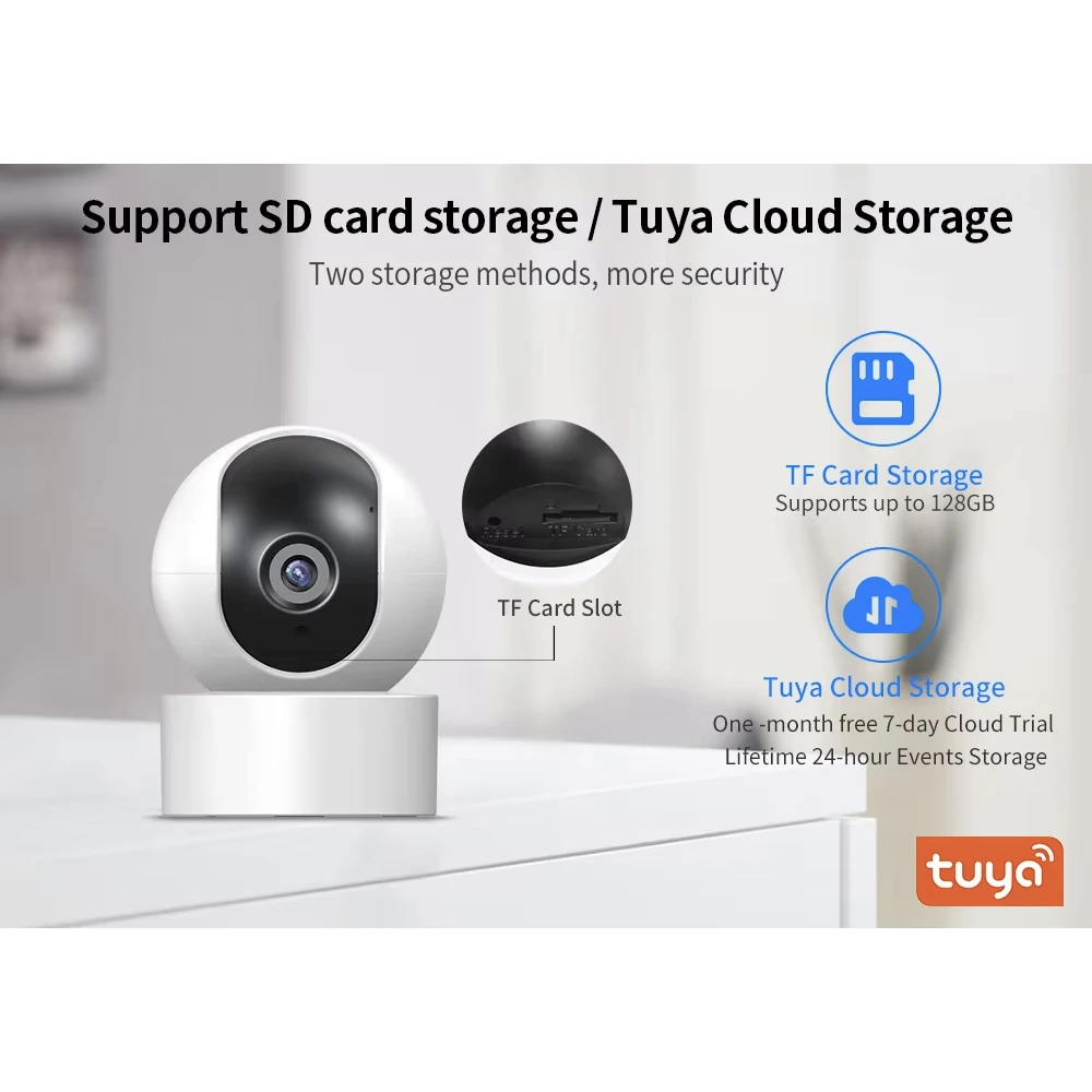 دوربین گردان هوشمند تویا HC Pro مدل SIC1 تمامی امکانات یک دوربین خانگی IP را دارا می باشد و با نصب آن در خانه به راحتی از طریق اپلیکیشن Tuya Smart می توانید منزل خود را از راه دور مشاهده کنید. با قرار دادن کارت حافظه SD در پشت دوربین تحت شبکه، تمام تصاویر ذخیره شده و امکان نمایش مجدد برای شما فراهم می شود.